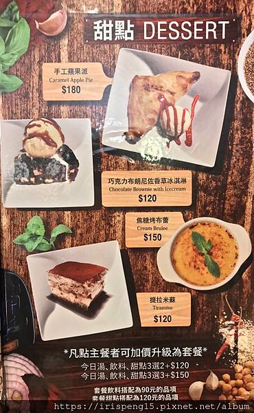 紐約克牛排(7.6元/克):200g:1520元、300g:2280元(點餐至少200克起)